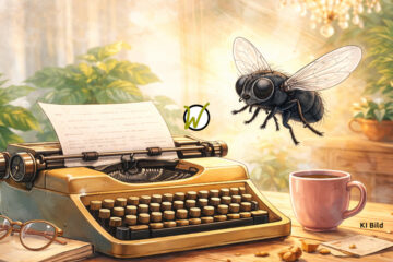 Stubenfliege Susi schreibt Schreibmaschine